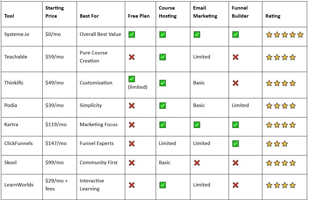 In 2026, the online course industry has matured. You no longer need to pay 149−399/month for features that alternatives now offer for free or at a fraction of the cost.
