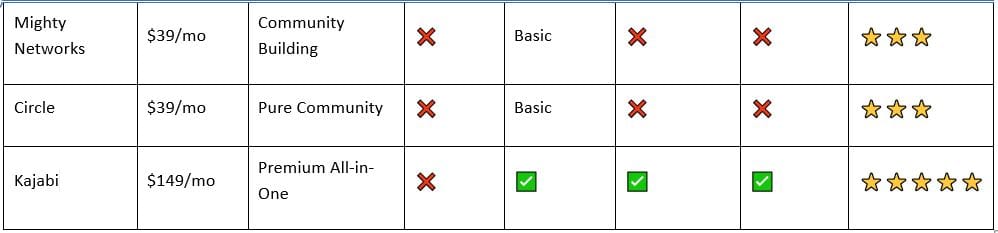 Limited compared to all-in-one platforms — Just does community and basic courses
