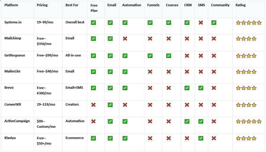 A: For most businesses, yes. Systeme.io includes everything Mailchimp offers (beautiful email) plus funnels, courses, automation, CRM, and affiliate program at similar or lower cost.