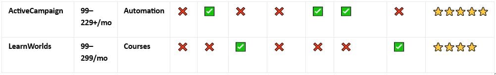 ✅ Complete feature set — CRM, funnels, email, courses, memberships, automation all included