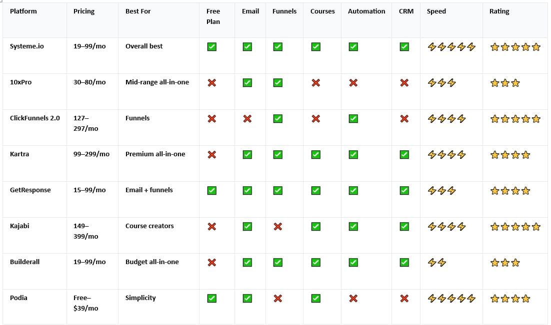 Whether you need better email automation, deeper funnel capabilities, a modern interface, or a true all-in-one system, you'll find your answer here.