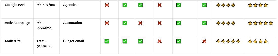 MailerLite is ideal if: Email is 70%+ of your business, you're budget-conscious, and you don't need funnels or courses.